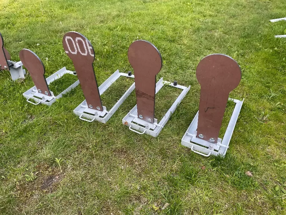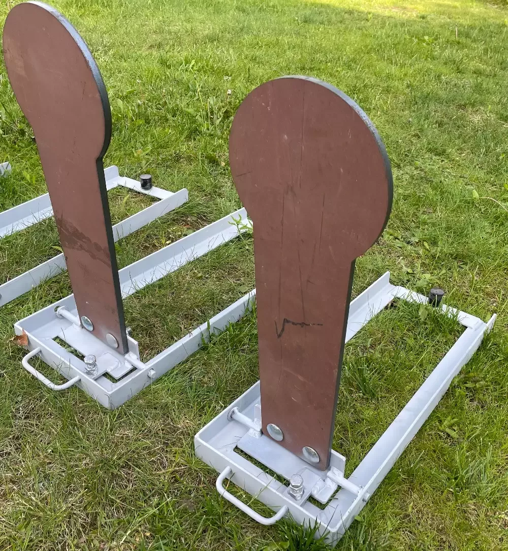 Materiał cel: blacha Hardox 450, grub. #10mm; fi20 x 54cm; wycinane laserowo Konstrukcja ramy: kątownik GW 40x40x5mm i 50x50x5mm Wymiary/waga: gabaryt 68x25x11cm, ok. 10,5kg Działanie / reakcja na trafienie: dźwięk i ruch (przewraca się) Obsługa: należy stawiać / resetować po trafieniu, nie potrzeba narzędzi do montażu Przeznaczenie / kaliber: zasadniczo strzelba gładkolufowa, świetnie reaguje na 9x19 i zbliżone energetycznie kalibry, przetrwa .223Rem, a nawet kalibry karabinowe; słabo reaguje na .22lr Dystans min.: 15m dla 9x19 i strzelby; 45m dla .223Rem Na sprzedaż również inne cele strzeleckie z Hardox 450 #10 i #12mm