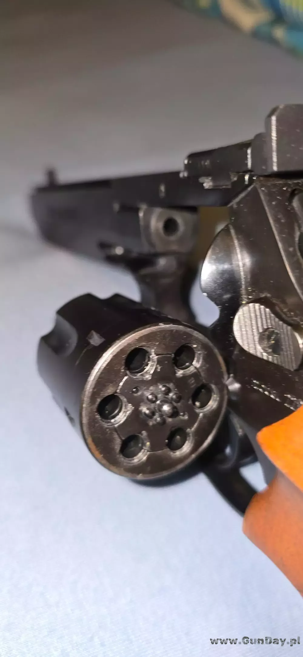 Rewolwer używany ale w idealnym stanie. Regulowana rękojeść. przelatane około 500 szt